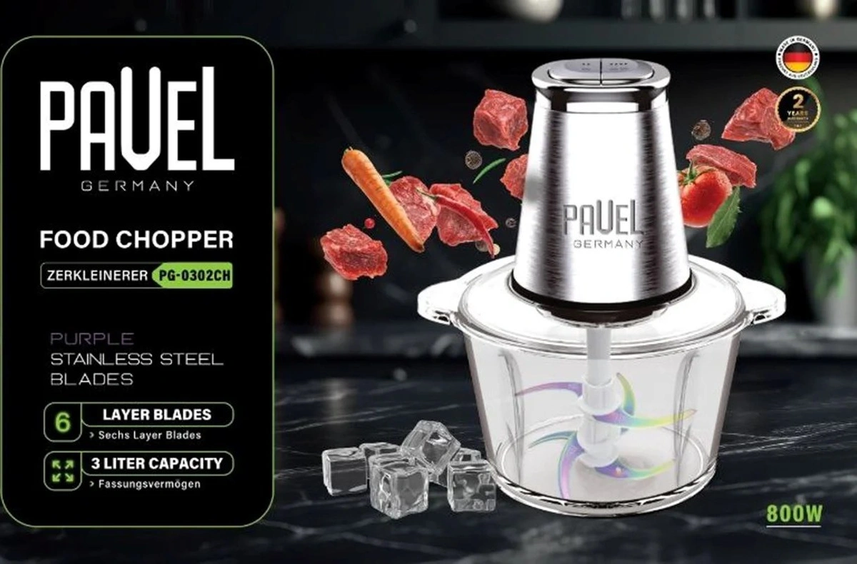 🍲 خردکن پاول مدل PG‑0302CH با ظرفیت ۳ لیتر، دستگاهی کامل و مدرن برای مصارف خانوادگی و نیمهحرفهای است که با طراحی زیبا و عملکرد قدرتمند، فعالیت در آشپزخانه را بسیار ساده میکند.