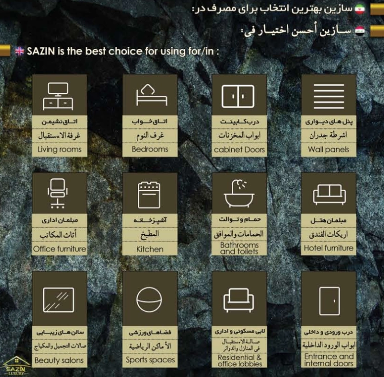 🏡 کابینت و کمد  📺 تی‌وی‌وال‌های خاص  🏊‍♂️ دیوارهای استخر، سونا، جکوزی  🏢 لابی شیک ساختمان🚪 کابین آسانسور  🚛 کانکس و فضاهای خاص  🌳 محوطه‌سازی با جلوه لوکس
